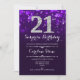 Convite para aniversário de 21 anos surpresa. Design púrpura elegante com prata brilhante. Aniversário adulto. Apresenta diamantes, luzes de boque e fontes de script. Homens ou mulheres convidam no dia. Perfeito para uma festa de aniversário na moda. Envie-me uma mensagem se precisar de mais personalização.