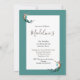 Um linda sereia flutuando sobre o cartão é a base deste design de convite de aniversário personalizado em um fundo azul-turquesa.