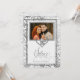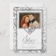 Convite lindo para convidar familiares e amigos para celebrar vinte e cinco anos de casamento. Feito em tons de prata com detalhes em branco linho, tudo com efeito digital de folha de prata. Personalize com uma foto do casal e inclua todos os detalhes do evento.