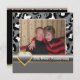 Convite de foto de aniversário de 25 anos de casamento com impressão de leopardo preto e branco cinza, apresentando um padrão de impressão de pantera moderno em preto, branco, cinza, uma faixa cinza prateada e coração e sua foto.