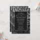 Elegante convite de aniversário de casamento de vinte e cinco anos em damasco floral preto e prata com borda de acento prateado para celebrar aquela data especial de vinte e cinco anos juntos. Personalize a frente do convite com a hora, data, local e outras informações.