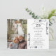 Este convite de aniversário de 25 anos de casamento prateado e elegante pode ser personalizado com suas informações em tipografia prateada moderna e suas 2 fotos especiais. Projetado por Thisisnotme©