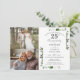 Este convite elegante de aniversário de casamento de prata de 25 anos em verde oliva pode ser personalizado com suas informações em tipografia prateada moderna e suas 2 fotos especiais. Criado por Thisisnotme©