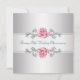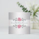 Convite de aniversário de casamento de prata elegante com rosas cor-de-rosa, branco e prata para festa de aniversário de 25 anos de casamento.