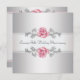 Elegante convite de aniversário de casamento de prata de 25 anos com rosas cor-de-rosa, branco e prata.