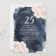 Convite de Aniversário de 25 anos Floral Beje de Aguarela Azul Marinho