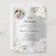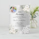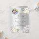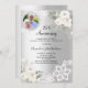 Para um elegante e romântico aniversário de 25. Um fundo com aspecto fino prateado decorado com flores, rosas e rendas brancas. Personalize e adicione sua foto, nomes e detalhes.