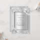 Fundo de aspecto fino prateado decorado com flores, flores e brilho fino prateado, brilhos. Personalize e adicione seus nomes e detalhes da festa. Letras negras.