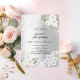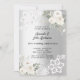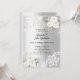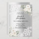 Para um elegante e romântico aniversário de 25. Um fundo com aspecto fino prateado decorado com flores, rosas e rendas brancas. Personalize e adicione seus nomes e detalhes.