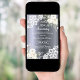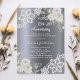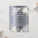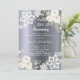 Para um elegante e romântico aniversário de casamento de 25, casamento de prata. Um fundo escuro, de aspecto prateado, decorado com flores brancas, rosas, rendas brancas. Personalize e adicione seus nomes e detalhes.