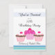 Um fundo branco simples mas divertido com algumas listras divertidas acentua este convite de festas aniversário de 30 anos..que não ama cupcake de aniversário, design de aniversário delicioso! Personalizar com todas as suas informações... Três cupcakes de cor clara com aspersão e cerejas.