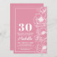 Apresentando um convite de festas chic e elegante, perfeito para celebrar 30 anos de estilo. O design apresenta um fundo cor-de-rosa mais profundo, quase como uma cor escura de ouro-rosa, com uma delicada arte de linhagem de anêmonas correndo pelo lado direito. Enquanto estas são flores anêmonas, elas podem puxar um olhar floral bastante genérico. Um quadro simples ao redor da borda adiciona um detalhe extra ao design geral. As fontes são uma mistura de tipografia elegante, serifa ousada e estilos modernos simples, com um grande "30" exibido no topo, seguido dos detalhes da festa abaixo. No verso, a design continua com o mesmo fundo rosa mais profundo e um contorno de flores brancas solteiros, acrescentando um toque sutil e sofisticado. Este convite é perfeito para uma comemoração de trinta anos. A cor de fundo, as fontes e até as flores podem ser personalizadas para corresponder ao seu estilo. Aniversário de 30 anos, Cor-De-Rosa Floral, Invita Design de Flor Cinzenta Com Tipografia Negra E Script. Disponível como um convite impresso ou como um convite digital para download que você pode enviar por e-mail ou que foi impresso localmente!