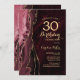 Ouro borrifado, aniversário de 30 anos convite de festas. Elegante design moderno, com a cor da água do vinho tinto-escuro de marsala, com o fundo geode do mármore, o dourado falso brilho e o guião tipográfico. Trendy convida o cartão perfeito para uma comemoração de dia das mulheres na moda. Impressos convites Zazzle ou modelo de impressão digital instantânea para download.