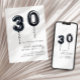 Um convite minimalista para balões aniversário de 30 anos preto.