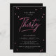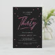 Aniversário de 30 anos de Convite para Caligrafia Negra Moderna, apresenta uma divertida dispersão de foil cor-de-rosa e caligrafia moderna.