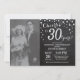 Aniversário de 30 anos de casamento com foto personalizada. Convite preto e prata em quadro-negro. Trinta anos de aniversário de casamento. Fundo de diamante brilhante preto e prata em quadro-negro. Confetes prateados. Aniversário adulto. Festa de aniversário masculina ou feminina. Para personalização adicional, clique no botão "Personalizar" e use nossa ferramenta de design para modificar este modelo.