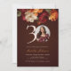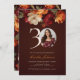 Comemore ao estilo do eterno com este convite romântico para aniversário de 30 anos florais de vintagem com arrojados florais de outono, um fundo arrojado profundo e detalhes elegantes de roteiro. O grande número de marco combinado com uma foto personalizada torna este design clássico e único, perfeito para criar uma celebração digna de manutenção. Personalize com os detalhes do evento para uma parte sofisticada e memorável.