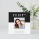 Design moderno minimalista de blocos coloridos com um modelo de foto no qual você pode adicionar sua bela foto, com preto no topo e branco do fundo com texto simples moderno dizendo trinta em branco sobre um fundo preto no topo também todos os detalhes em uma simples fonte moderna em preto no fundo. se você tem algum problema com este design ou gostaria dele em outros coloways, por favor, entre em contato comigo janine através do meu botão de mensagem do zazzle store em willow primavera Áudio.