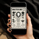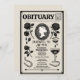 Dê aos vossos vinte anos uma mensagem adequada com este convite de aniversário de 30 anos do estilo obituário vintage. Projetado para se assemelhar a um aviso memorial, este convite exclusivo apresenta letras ousadas "OBITUARY", silhuetas retrógradas, rosas de luto, cordões de pérolas e um copo-de-coquetel clássico. Perfeito para a mulher com um senso de humor perverso e um talento para o dramático, esta design escura e elegante dá o tom para uma festa chic e inesquecível "Adeus aos Meus 20". Totalmente personalizável e ideal para jantas temáticos, coquetéis e comemorações sangrentas.