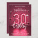 Convite Aniversário de 30 anos de Neon Rosa Vibrante com B
