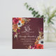 Lindas flores de outono decoram dois cantos deste convite. Rosas vermelhas, flores de terracotta e peões brancos misturam-se com folhas verdes e folhagem. As flores e o pop branco moderno contra o fundo vermelho burgundy. Este item faz parte da coleção Flores de Quedas de Borgonha.