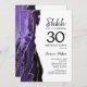 Convite de festas de aniversário de 30 anos surpresas roxo, branco e ouro agata. Elegante design moderno com aquarela agate marble geode background, faux glitter gold e typografia script font. Trendy convida o cartão perfeito para uma comemoração de dia das mulheres na moda. Impressos convites Zazzle ou modelo de impressão digital instantânea para download.