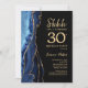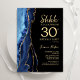 convite de festas marinho azul, preto e dourado agata o aniversário de 30 anos surpresa. Elegante design moderno com cor azul-real de água agate marble geode fundo, fonte falsa de ouro brilhante e script de tipografia. Trendy convida o cartão perfeito para uma comemoração de dia das mulheres na moda. Impressos convites Zazzle ou modelo de impressão digital instantânea para download.