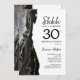 Convite de festas de aniversário de 30 anos surpresa preto, branco e ouro agata. Elegante design moderno com aquarela agate marble geode background, faux glitter gold e typografia script font. Trendy convida o cartão perfeito para uma comemoração de dia das mulheres na moda. Impressos convites Zazzle ou modelo de impressão digital instantânea para download.
