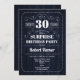 Convite para aniversário de 30 anos Surpresa design de retrorreflector Elegante com padrão de madeira azul marinho. Até 30 anos!