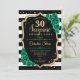 Convite de festas de aniversário de 30 anos surpresa. Design verde feminino preto, branco e esmeralda com ouro brilhante falso. Apresenta faixas pretas e brancas, rosas, fontes de script e confetti. Perfeito para uma elegante comemoração de aniversário feminina. Pode ser personalizado para mostrar qualquer idade. Impressos convites Zazzle ou modelo de impressão digital instantânea para download.