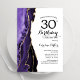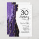 Convite de festas de aniversário de 30 anos roxo, branco e dourado. Elegante design moderno com aquarela agate marble geode background, faux glitter gold e typografia script font. Trendy convida o cartão perfeito para uma comemoração de dia das mulheres na moda. Impressos convites Zazzle ou modelo de impressão digital instantânea para download.