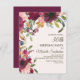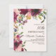 Lindo e elegante ameixa, púrpura e rosa, com folhas verdes salgadas, convite de festas botânico de aniversário de 30 anos de aquarelas para mulheres. O texto é uma fonte de pincel de caligrafia dourada e está alinhado no lado direito da placa. Este convite de aniversário vai para a nossa Coleção de Festas de aniversário Florais Borgonha e Cor-de-Rosa Esmagada. Entre em contato conosco para obter ajuda com a personalização ou para solicitar produtos correspondentes.