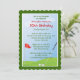 Você pode personalizar todo o texto neste convite de aniversário temático do 30o golfe. Você pode mudar o texto e o número na parte dianteira e usar isto para um 65th, 60th, 50th ou outro aniversário. As características de design uma cena do furo do campo de golfe com clube de golfe, bola, e bandeira.