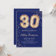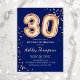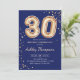 convite de festas aniversário de 30 anos. Design elegante em ouro brilhante e azul marinho. O cartão de convite apresenta o número dourado 30 balões e a fonte do script. Perfeito para uma comemoração de na moda. Envie-me uma mensagem se precisar de idade personalizada.