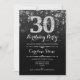 Convite para aniversário de 30 anos. Design branco preto elegante com prata brilhante falso. Aniversário adulto. Apresenta diamantes e fontes de script. Convidado para homens ou mulheres no dia. Perfeito para uma festa de aniversário na moda. Envie-me uma mensagem se precisar de mais personalização.