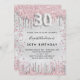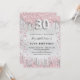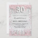 Um convite moderno, elegante e glamoroso para uma festa de aniversário de 30 anos. Um fundo com aparência de prata falsa, decorado com faíscas rosa e prata falsa. Personalize e adicione seu nome e detalhes da festa. O número 30 é escrito com uma fonte estilo balão, manuscrita.