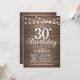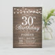 Convite Rustic aniversário de 30 anos com as luzes de cordas Fundo de madeira. 16º 18º 21rua 30 40º 50º 60º 80 90 100º, Qualquer idade. Para mais personalização, clique no botão "Personalizar" e use nossa ferramenta de design para modificar este modelo.