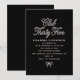 Convite elegante preto e branco apresenta texto em pérola branca e um pequeno laço de pérola em um fundo preto. Club Thirty-Five dá a ele um clima moderno e descolado, enquanto o laço na parte inferior adiciona feminilidade elegante.