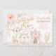 Ajude a comemorar o aniversário de 3 anos da sua menina com este adorável convite de festas tribal / boho inspirado. A design apresenta lindos animais de floresta vestindo uma coroa de flores cinzentas sobre suas cabeças, ao lado de uma bonito árvore rosa adornada com rosas de pincel de água e verde macio. Se desejar alterar as fontes, as cores da fonte ou reorganizar o posicionamento do texto, basta clicar no botão "Personalizar mais".
