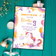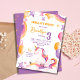 Celebre o dia especial do seu filho com este Convite Magical do aniversário de 3 anos do Arco-Íris do Unicórnio, com um delicioso unicórnio de aquarela cercado por balões, estrelas e arco-íris coloridos. A design branca inclui sombras pastéis de púrpura, rosa e ouro, fazer a escolha perfeita para uma festa de aniversário com formato unicórnio. Personalizado com o nome do seu filho e os detalhes da festa, este convite encantador é ideal para uma celebração mágica. O dorso mostra um fundo roxo vibrante adornado com estrelas ouros, acrescentando um toque de brilho. Quer você esteja planejando uma festa de aniversário de unicórnio arco-íris ou uma celebração de conto de fadas, este cartão é uma bela maneira de convidar seus convidados. Obrigado por ter vindo. Se você tiver alguma dúvida sobre a personalização, envie-me aqui ou entre em contato comigo em arteartz0588@gmail.com