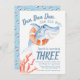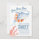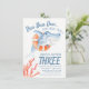 Belo tubarão-bebê com um convite para aniversário de 3 anos. Personalize a frente deste convite bonitinho com sua própria escolha de nome, idade de aniversário e detalhes do evento de aniversário. Outros itens correspondentes disponíveis. Impressão é tirada de uma pintura de aquarela original por Sarah Trett para www.mylittleeden.com
