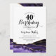 Convite de festas de aniversário de 40 anos roxo, branco e dourado. Elegante design moderno com aquarela agate marble geode background, faux glitter gold e typografia script font. Trendy convida o cartão perfeito para uma comemoração de dia das mulheres na moda. Impressos convites Zazzle ou modelo de impressão digital instantânea para download.
