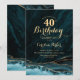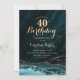 Convite de festas de aniversário de 40 anos de chá e de ouro agata. Elegante design moderno com cor azul-d-água azul-turquesa agate marble background, faux glitter gold e typografia script font. Trendy convida o cartão perfeito para uma comemoração de dia das mulheres na moda. Impressos convites Zazzle ou modelo de impressão digital instantânea para download.