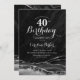 Convite de festas aniversário de 40 anos preto e prateado. Elegante design moderno com aquarela agate marble geode background, faux glitter prata e tipografia. Trendy convida o cartão perfeito para uma comemoração de dia das mulheres na moda. Impressos convites Zazzle ou modelo de impressão digital instantânea para download.