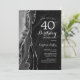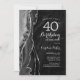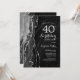 Convite de festas aniversário de 40 anos preto e prateado. Elegante design moderno com aquarela agate marble geode background, faux glitter prata e tipografia. Trendy convida o cartão perfeito para uma comemoração de dia das mulheres na moda. Impressos convites Zazzle ou modelo de impressão digital instantânea para download.