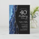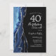 convite de festas aniversário de 40 anos azul marinho, preto e prateado. Elegante design moderno com cor azul-real de água agate marble geode fundo, faux glitter prata e script de tipografia. Trendy convida o cartão perfeito para uma comemoração de dia das mulheres na moda. Impressos convites Zazzle ou modelo de impressão digital instantânea para download.