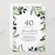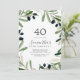 Este aniversário de 40 anos é perfeito para uma festa de aniversário de boho. O design rústico, porém elegante, apresenta folhas botânicas de cor aquática simples e azeitonas pretas num pequeno galho com um toque mediterrânico clássico.
