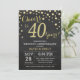 Convite de Aniversário de 40 anos de Casamento Quadro de Giz Preto e Dourado. Quarenta Anos de Casamento. Fundo de Diamante Brilhante Preto e Dourado. Confetes Dourados. Aniversário Adulto. Festa de Aniversário de Homem ou Mulher. Para personalizar ainda mais, clique no botão "Personalizar" e use nossa ferramenta de design para modificar este modelo.