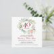 Com uma delicada grinalda floral em aquarela, este convite de aniversário de 40 anos de casamento botânico chic pode ser personalizado com as suas informações especiais de aniversário de rubi. O verso apresenta uma grinalda floral correspondente emoldurando as datas do seu aniversário em texto branco elegante sobre um fundo rubi. Desenhado por Thisisnotme©