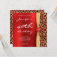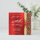 Crie seus próprios convites de aniversário personalizáveis para fabuloso aniversário de 40 anos ou outra celebração especial. À esquerda, a sala de criar para o seu convite, é um gráfico de arte digital ao estilo de filme digital, brilhante e vermelho, feito com pincel. À direita está um gráfico de ouro brilhante e folha de papel-padrão vermelha. Os dois blocos são separados por uma fita decorativa de cetim de ouro amarelo esbatida vertical com uma imagem de pedra preciosa de diamante rubi. As joias de diamante do estilo luxo, brilho e rocha são criadas com gráficos digitais impressos. A rubi glamourosa, vermelha, amarela, bronzeada, ouro, preto e branco convida para seu evento especial.